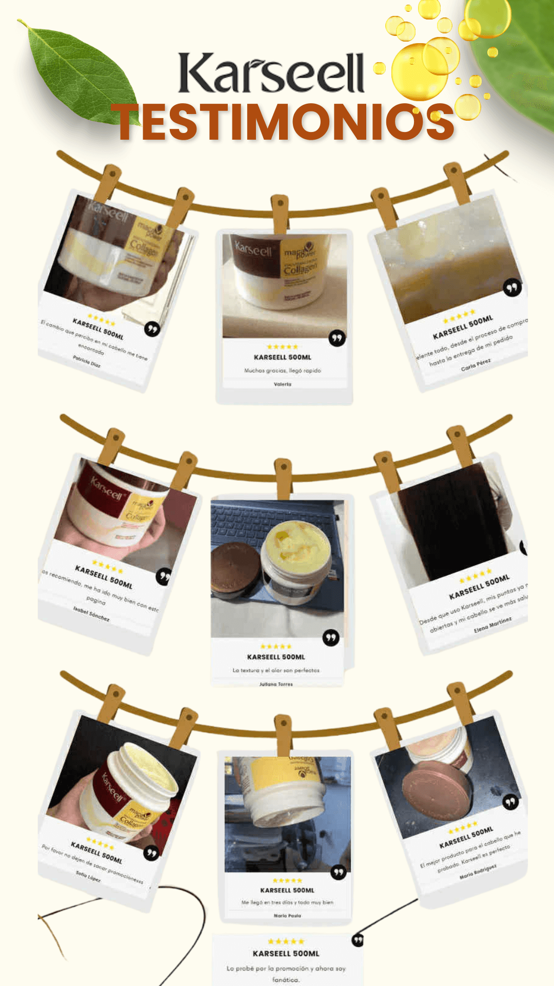 Carolina M. – Barranquilla, Colombia"Vivo en una ciudad con mucha humedad y el frizz siempre fue mi enemigo, pero con la keratina Karseell y el aceite de argán mi cabello se mantiene controlado, hidratado y con un brillo increíble todo el día."