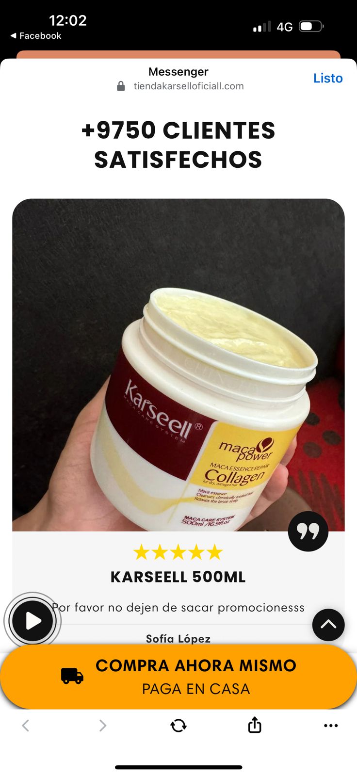Laura G. – Bogotá, Colombia"Mi cabello estaba maltratado por las planchas y tintes, pero desde que usé la keratina Karseell con el aceite de argán, mi pelo quedó suave, brillante y sin frizz. ¡Hasta mi peluquera me preguntó qué tratamiento me había hecho!"