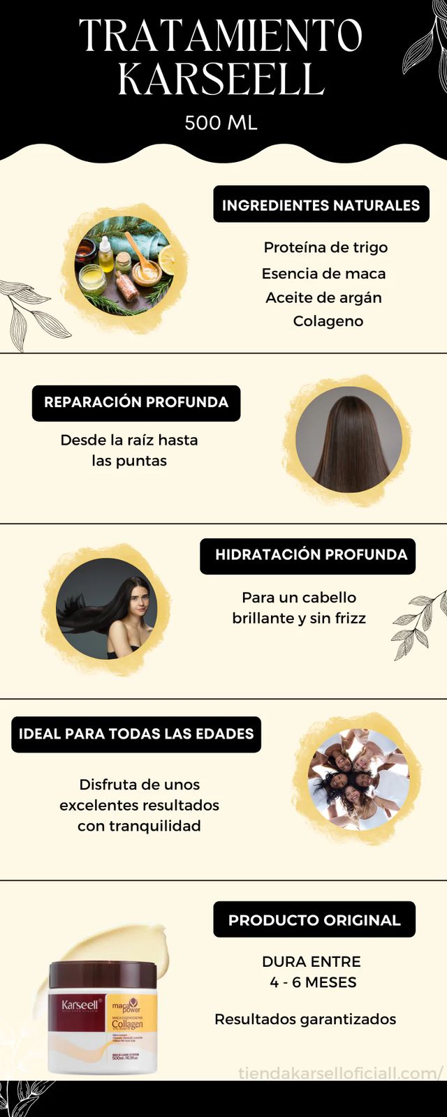 La keratina de Karseell repara profundamente el cabello maltratado gracias a su poderosa fórmula enriquecida con colágeno 💪🌿, que nutre desde la raíz hasta las puntas. Hidrata intensamente, elimina el frizz ✨ y deja tu melena suave, brillante y manejable 💆♀️✨.